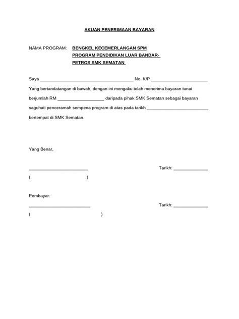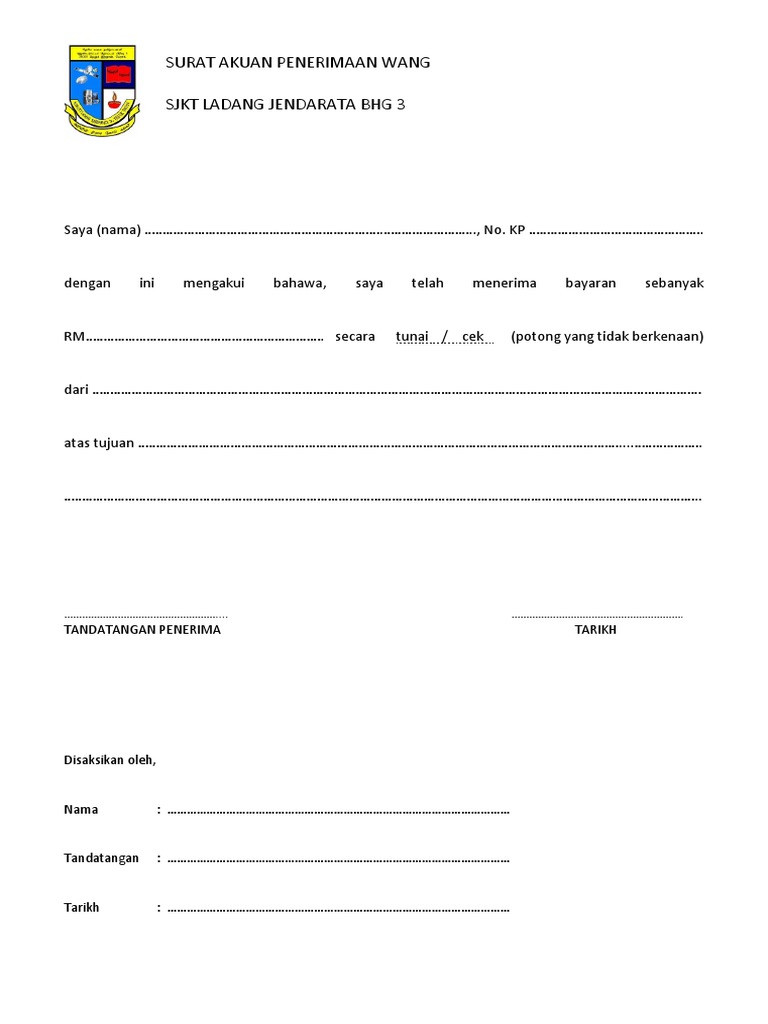 Surat akuan penerimaan wang bayaran program projek aktiviti. Selain gaji besar Anda akan menjadi sumber kegembiraan bagi banyak rumah. Contoh surat penyerahan dokumen malaysia contoh surat akuan terima wang contoh surat syarikat contoh surat rasmi permohonan 15 contoh surat.